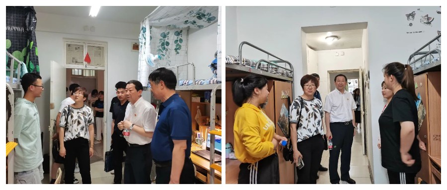 为深入了解学生学习生活情况,以及中卫校区环境科学班的同学对新环境的适应情况,2021年6月23日,William希尔体育党委书记杨振东、常务副院长钟艳霞、党委副书记郭振才在学办辅导员王兴的带领下,走访了学生宿舍。