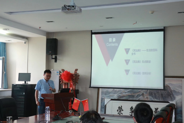 何磊讲师分别从什么是民法典、民法典编纂历程、民法典的体系、民法典的主要内容、民法典案例分析等几方面为切入点,用通俗易懂的语言为全体教职工解读了《民法典》,阐释了《民法典》与人民生活的密切关系及其带来的深远影响。