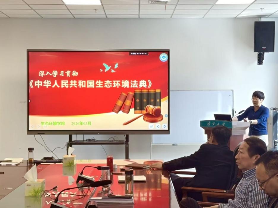院长钟艳霞作《生态环境法典》专题领学报告,系统梳理了法典的立法历程、出台背景与实施时间,深入阐释了我国生态环境立法“适度法典化”的创新模式,全面解读了法典总则、污染防治、生态保护、绿色低碳发展、法律责任5编共1242条的整体框架体系,明确了法典施行后《环境保护法》《水污染防治法》等10部现行核心生态环境单行法律同步废止的重要立法安排。领学过程中,钟艳霞院长重点聚焦法典的制度创新亮点,对绿色低碳发展独立成编的立法突破、新型污染物防治等立法空白的填补、生态环境执法监管体系的全面升级、生态环境违法成本大幅提升等核心内容进行深度剖析,并结合学院学科特色与发展定位,系统梳理了法典实施后生态环境领域可重点突破的研究方向,为全院师生下一步的教学改革、科研创新与实践探索明确了路径。