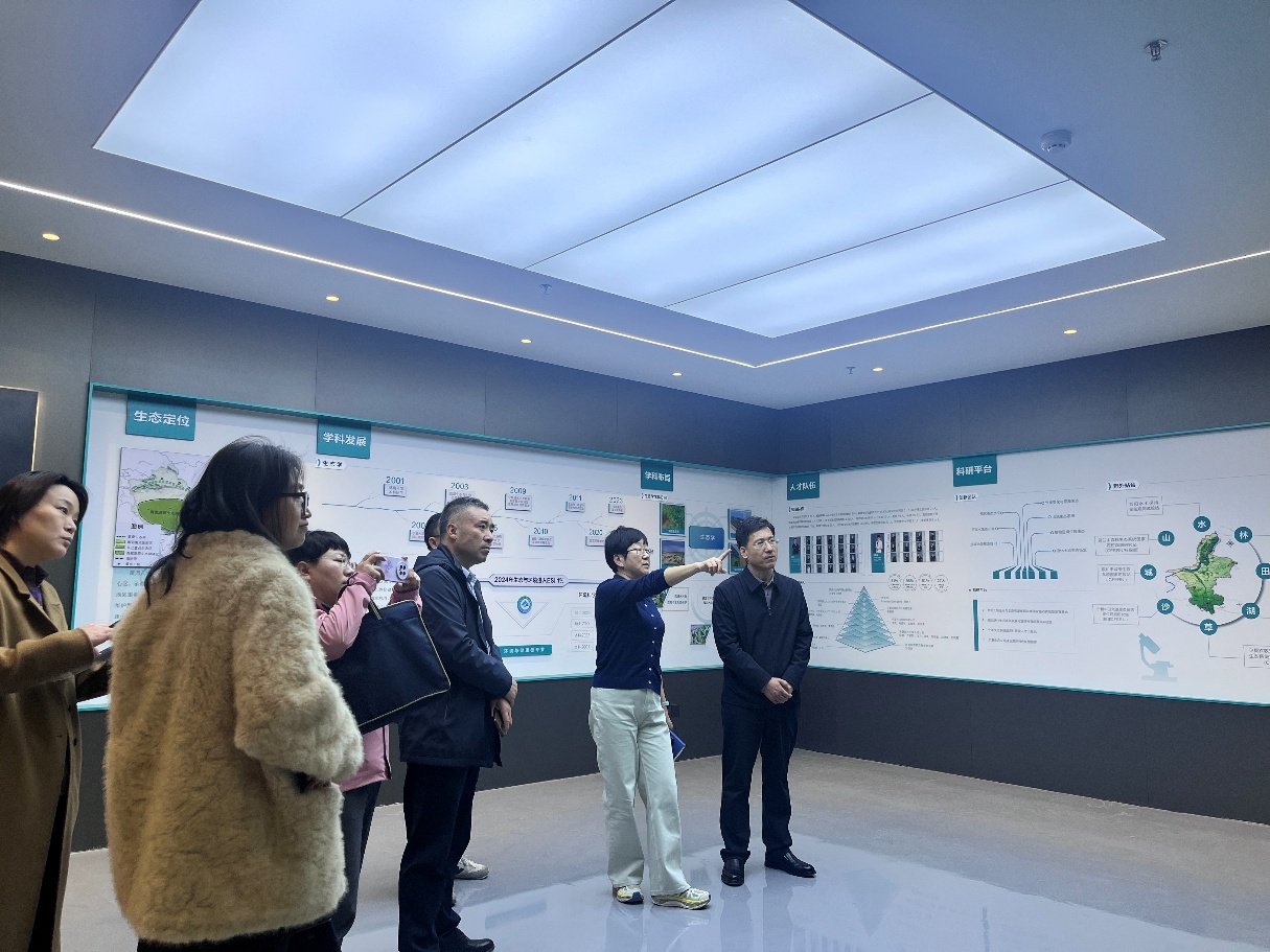 会前,在学院院长钟艳霞及学科带头人的陪同下,马国民部长一行首先参观了习近平生态文明思想主题展和学院近年来的核心科研成果展,重点了解了学院在西北干旱区流域生态治理、煤化工废水深度处理、水环境监测等特色研究方向的技术积累,对学院扎根地方生态需求的科研导向给予高度评价。