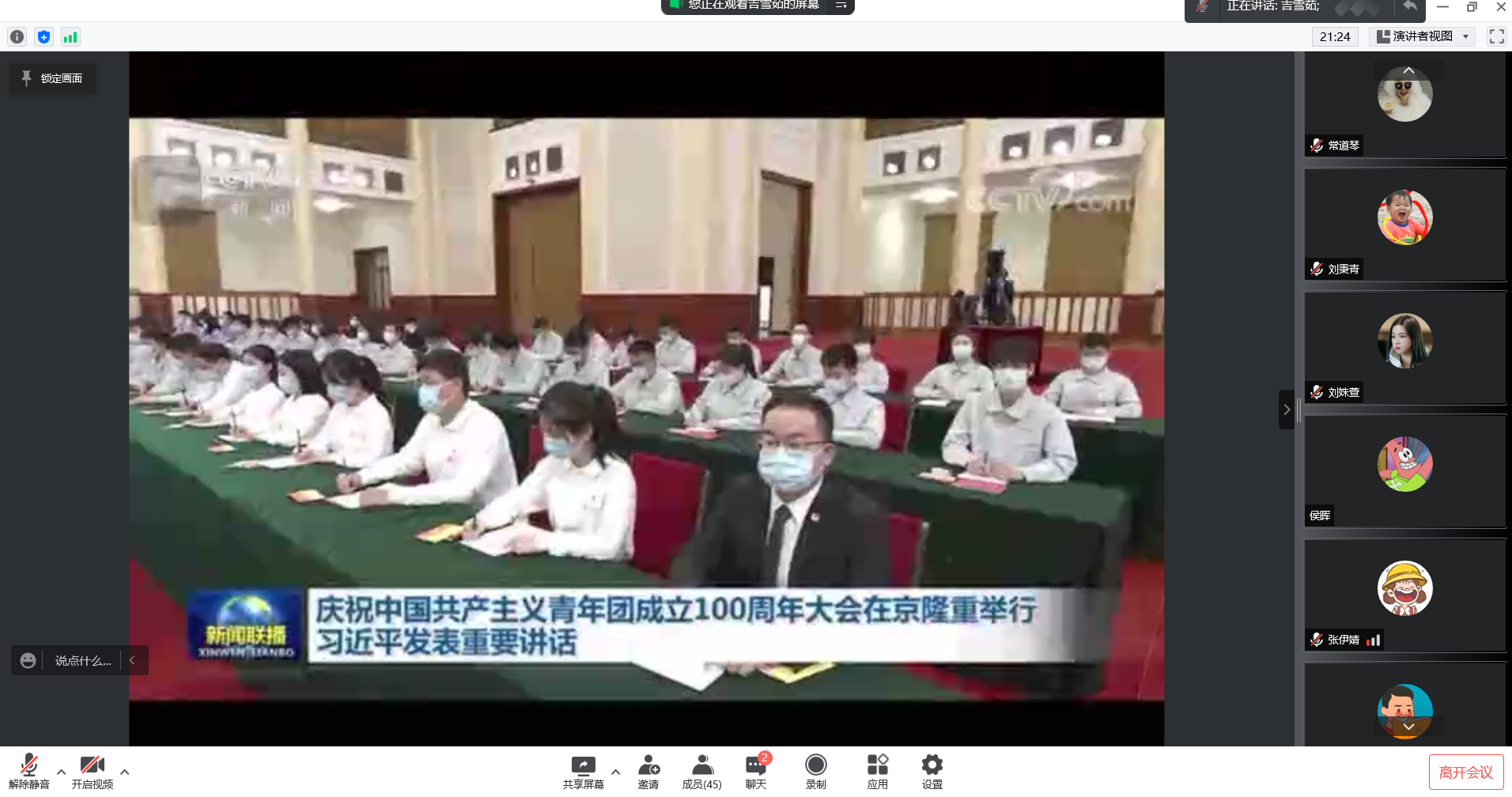 为深入学习贯彻习近平总书记在庆祝中国共产主义青年团成立100周年大会上的重要讲话精神,5月24日,研究生党支部组织开展线上主题党日活动。活动由支部书记吴宏玥主持。 吉雪茹、刘秉青分别带领全体党员、发展对象、入党积极分子...