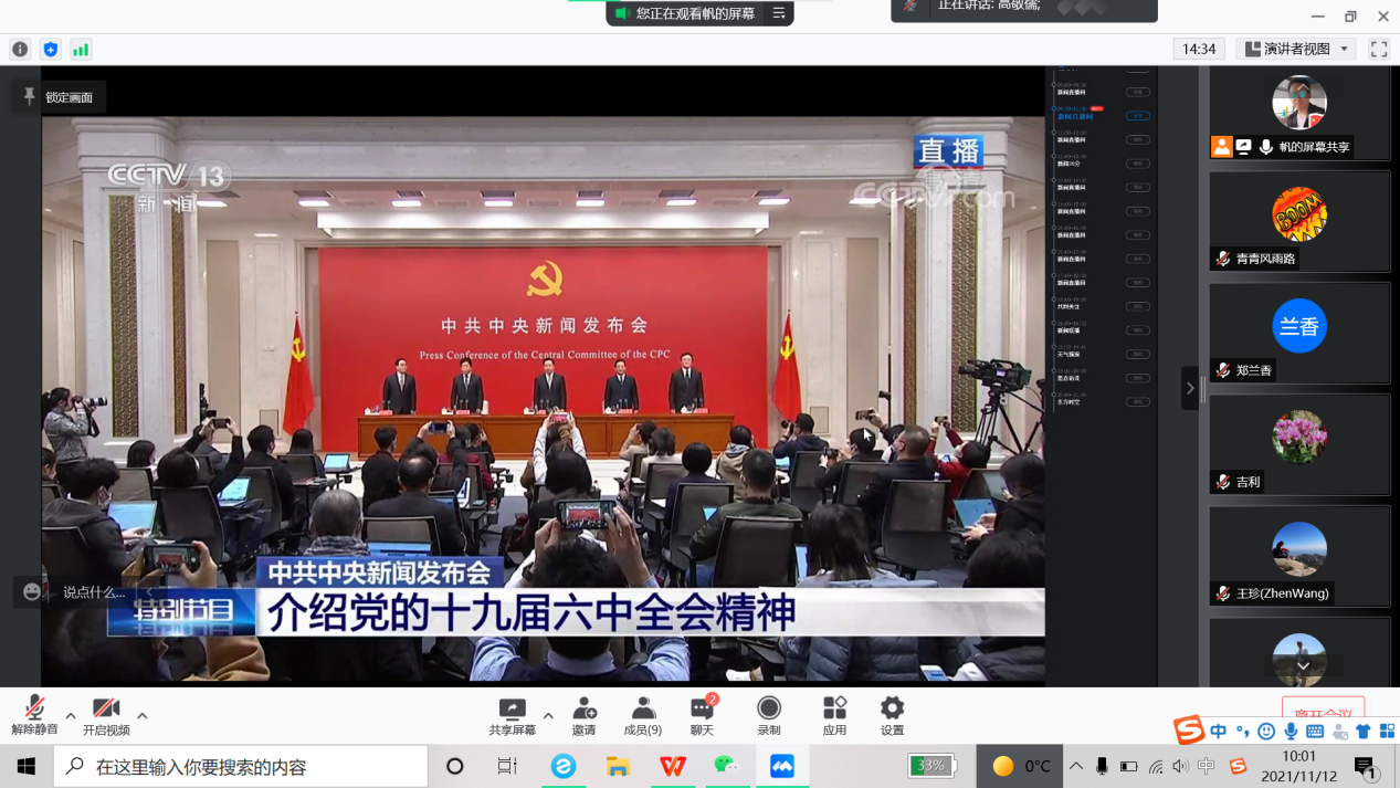11月12日上午,环境科学与工程系教工党支部组织全体党员以视频方式集中观看党的十九届六中全会新闻发布会,学习十九届六中全会精神。会议由支部书记杨帆主持,全体党员参加了专题学习活动。杨帆书记带领与会党员简单了解了《中...