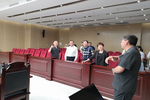 揭牌仪式结束后,在王海滨书记的陪同下,王玉炯书记一行参观了银川铁路运输法院的自助服务大厅、审判庭等地,详细了解了资源环境庭审判职责。