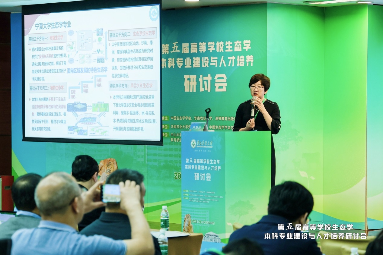 会议围绕着新时代生态学本科专业建设与人才培养的会议主题,在生态学本科专业与一流人才培养体系建设、一流课程与立体化教学资源建设、人才培养模式与教学方法改革创新、课程思政建设与三全育人的实践探索、师资团队与人才培养质量监管评价体系建设、实践教学与大学生创新创业能力培养方面有13个大会特邀报告、25个分会场报告,院长钟艳霞教授做“对标国家黄河战略的生态学专业人才培养——WilliamHILL中国实践”的大会特邀报告,介绍了国家黄河战略、宁夏生态环境特征、WilliamHILL中国生态学本科专业建设和思考等。会议期间,学院老师们积极与相关院校老师探讨本科专业建设、培养目标和方向、课程体系建设、思政课程、实验实习实践等内容。本次会议主题突出,内容丰富,对加强我院生态学专业建设、课程建设、提升专业人才培养质量具有重要指导意义。