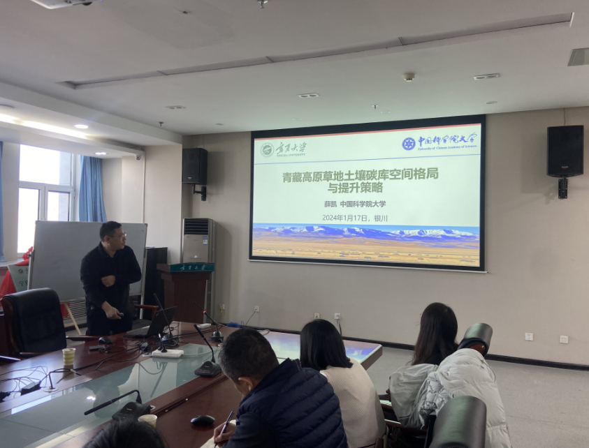 2024年1月17日下午,在贺兰山校区科技楼A510会议室,我院邀请中国科学院大学薛凯教授做客生态环境大讲堂第八讲,做了题为“土壤碳库空间格局与提升策略”的学术报告。学院全体教师和生态学本科生、研究生聆听了学术报告。刘任涛副院长主持学术报告会。