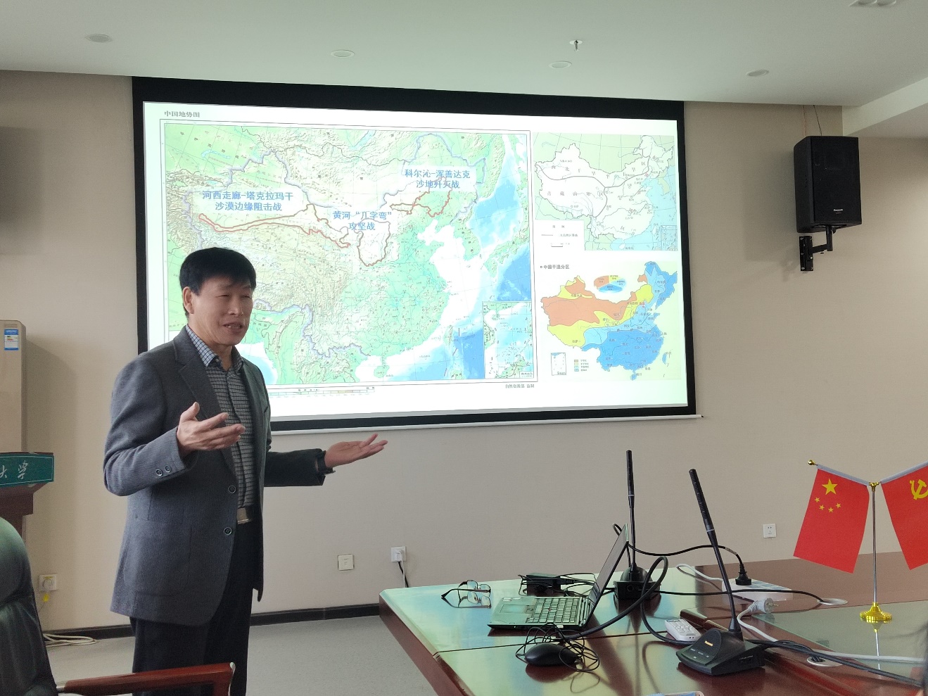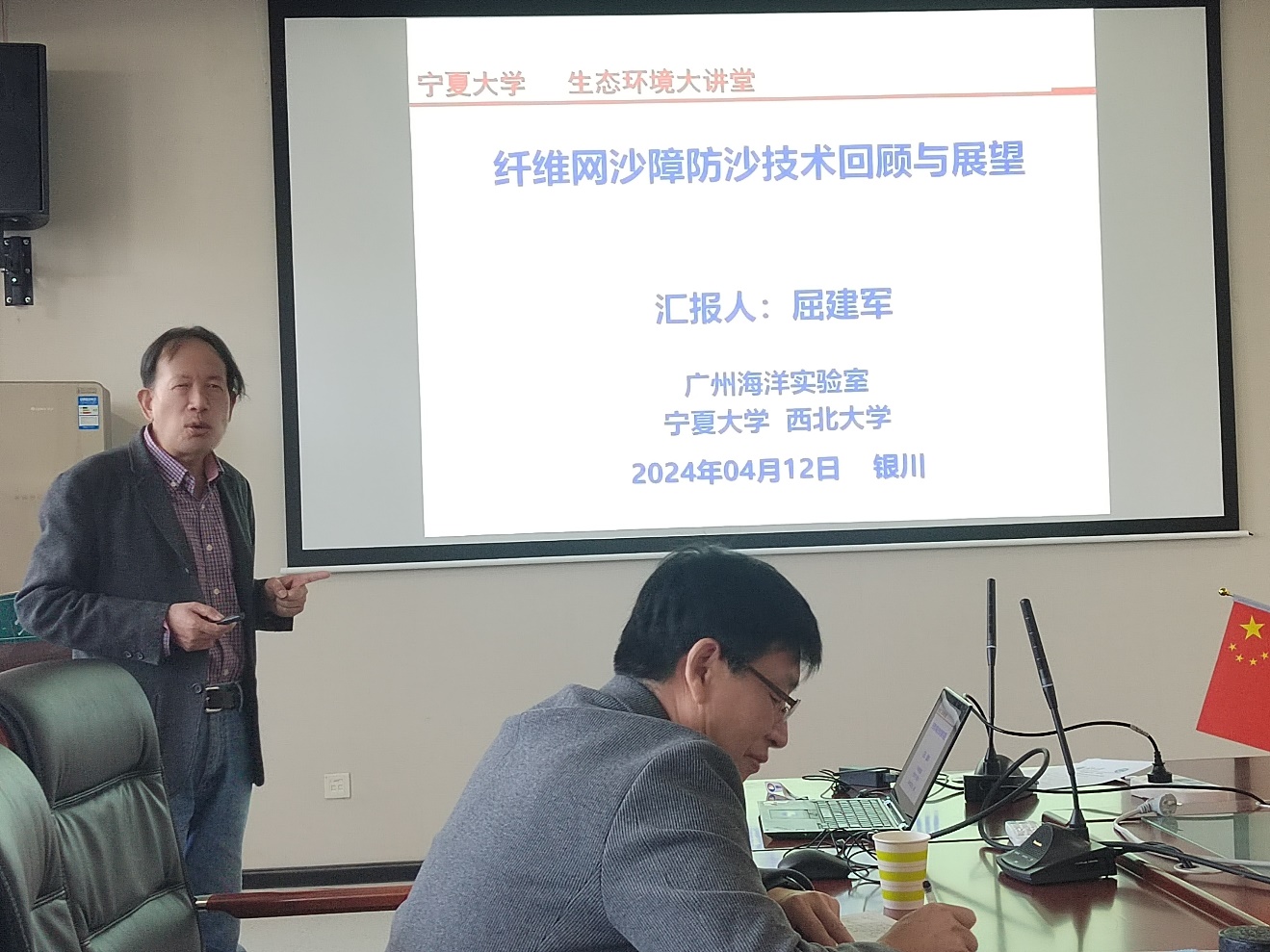 2024年4月12日,我院邀请到中国科学院新疆生态与地理研究所二级研究员雷加强、西北大学特聘教授屈建军,做客生态环境大讲堂第九讲和第十讲。全体教师参加学术报告会,学院刘任涛副院长主持报告会。