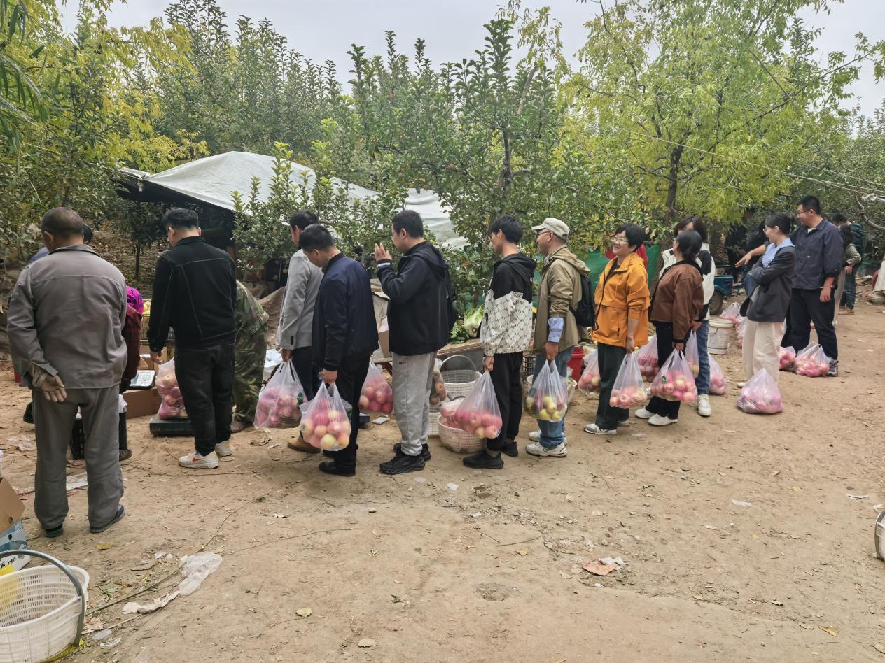 探寻美丽乡村,携手乐游采摘。教职工们在采摘中亲近自然、了解当地文化、享受“醉”美秋天。采摘现场气氛活泼热闹又不失温馨和谐。大家一边吃苹果,一边采摘,很快每个人就摘了满满的两大袋,互相帮助搬上车,满载而归。