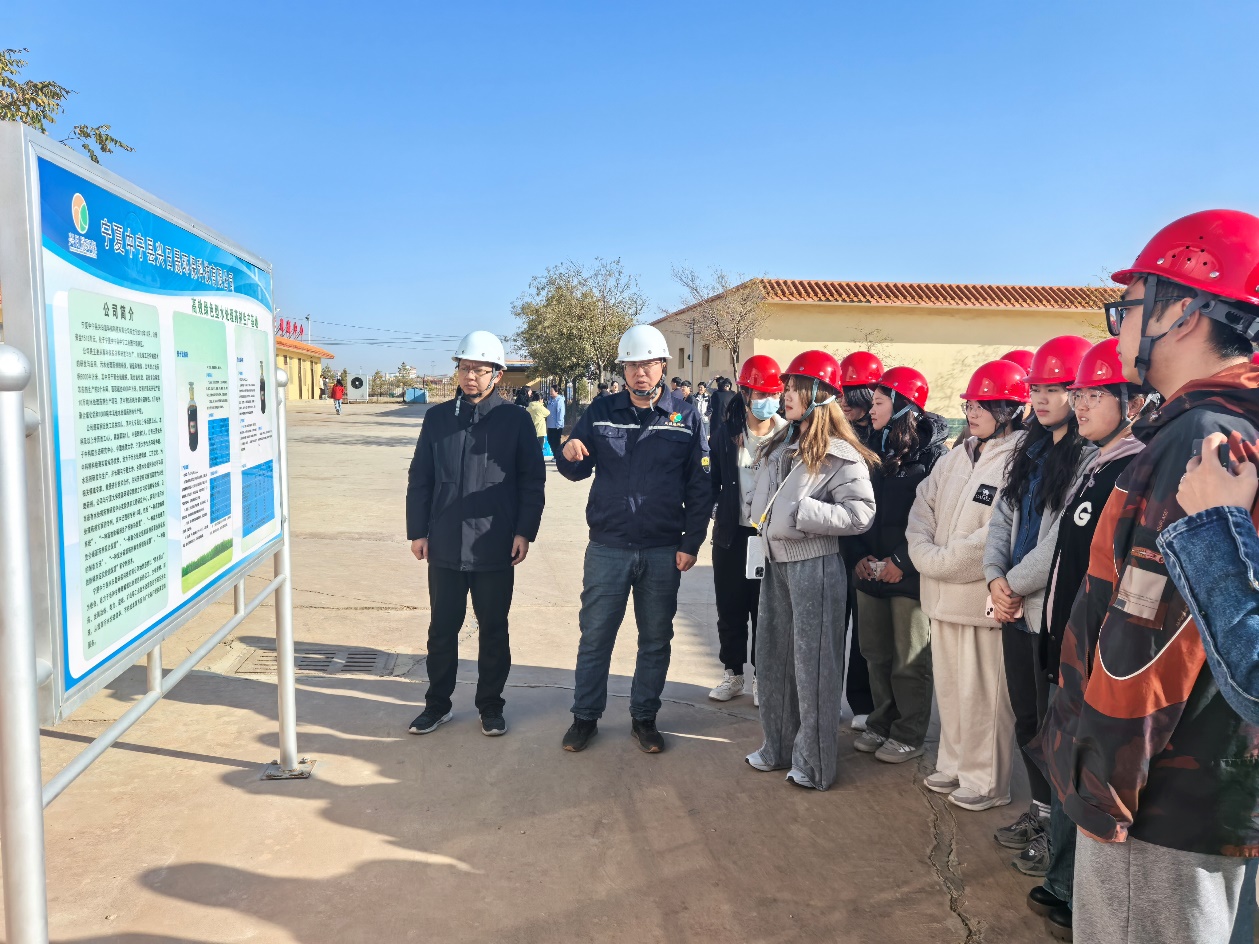 11月10日,实习团队继续他们的实践之旅。他们首先来到了宁夏中宁县兴日晟环保科技有限公司,学习了水处理剂的研发和生产过程。在这里,学生们了解了环保科技的创新和应用,对水处理剂在环保领域的重要性有了更为深入的了解。