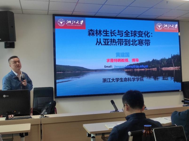 2025年4月27日,应我院邀请,浙江大学生命科学学院、求是特聘教授、博士生导师黄建国以“森林生长与全球变化:从亚热带到北寒带”为题做了精彩的学术报告。报告会由学院院长钟艳霞主持,相关专业教师、研究生等100余人参加报告会。
