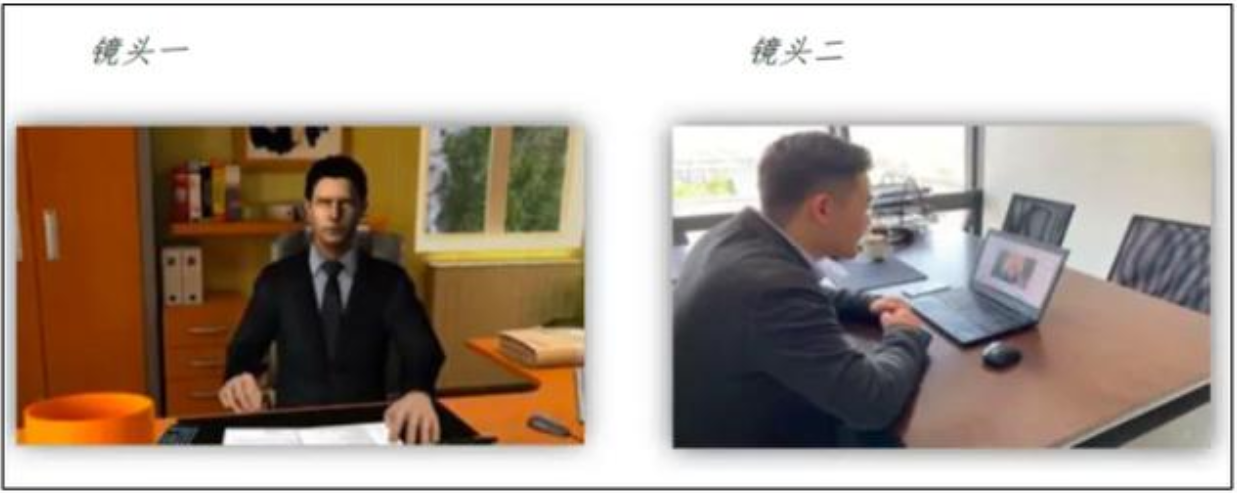 考生面试时正对摄像头保持坐姿端正。双手和头部完全呈现在复试专家可见画面中。