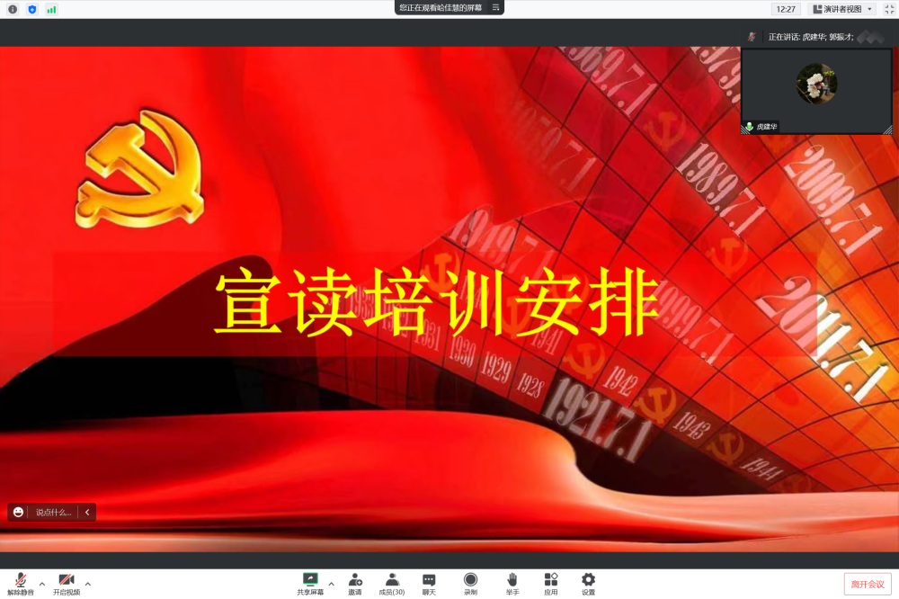 虎建华宣读了本次党课培训的课程安排。本次党课培训内容包括学习党章、党史等党基本理论知识、开展志愿服务活动、观看《非凡十年》等。虎书记希望各位入党积极分子珍惜培训机会,认真学习,深刻体悟,争取早日加入党组织。