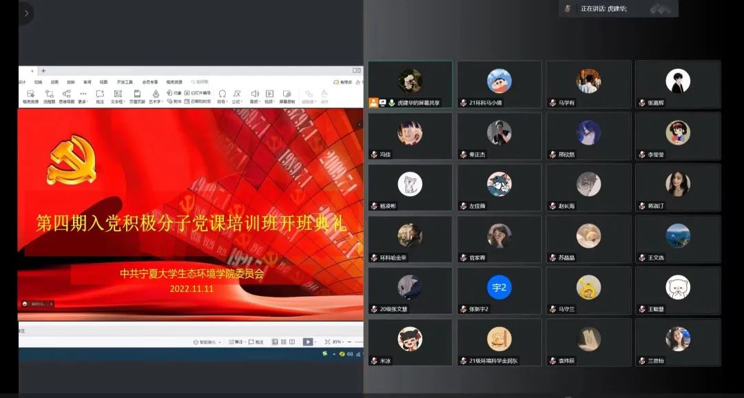 为深入学习宣传贯彻党的二十大精神,进一步加强党员队伍建设,11月11日,William希尔体育于线上召开了第四期入党积极分子党课培训班开班仪式。学院党委书记杨振东、党委副书记郭振才和虎建华、辅导员王兴及第四期入党积极分子培训班的学员参加了开班仪式。会议由郭振才主持。