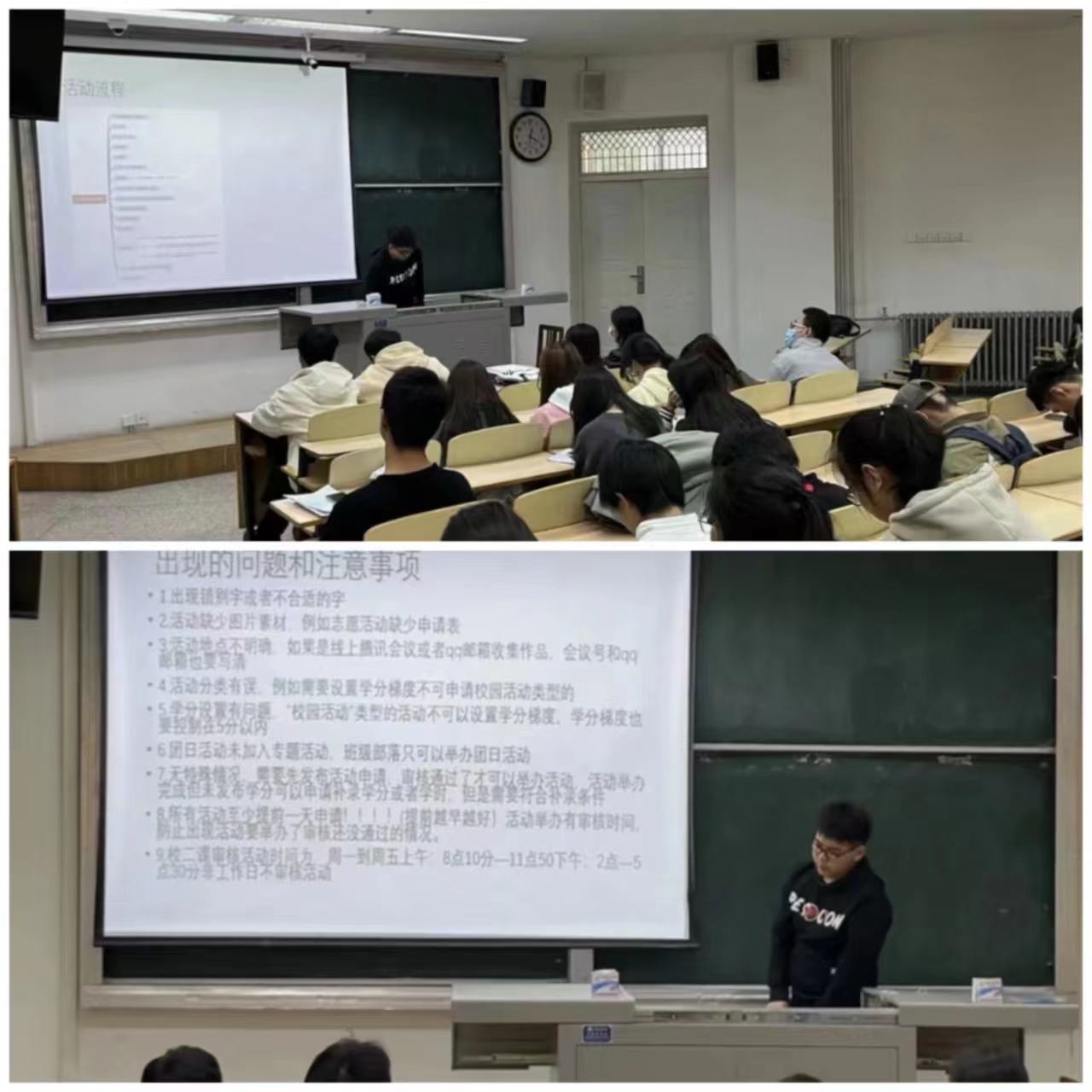 随后,组织部负责人吕建峰为大家详细讲解了二课活动申请流程和到梦空间的活动发布规范,结合日常工作中遇到的问题进行阐述,使各部门学生干部对基本申请活动事项有了更深入的认识。