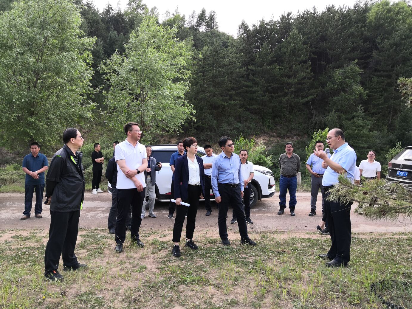 在余根民董事长陪同下,彭志科校长、王荣书记一行首先参观了宁苗生态集团的油松造型、六盘山花灌木、叶用枸杞等3个示范区和燕家山基地,详细了解了企业在发展过程中取得的优秀成果和成功案例。