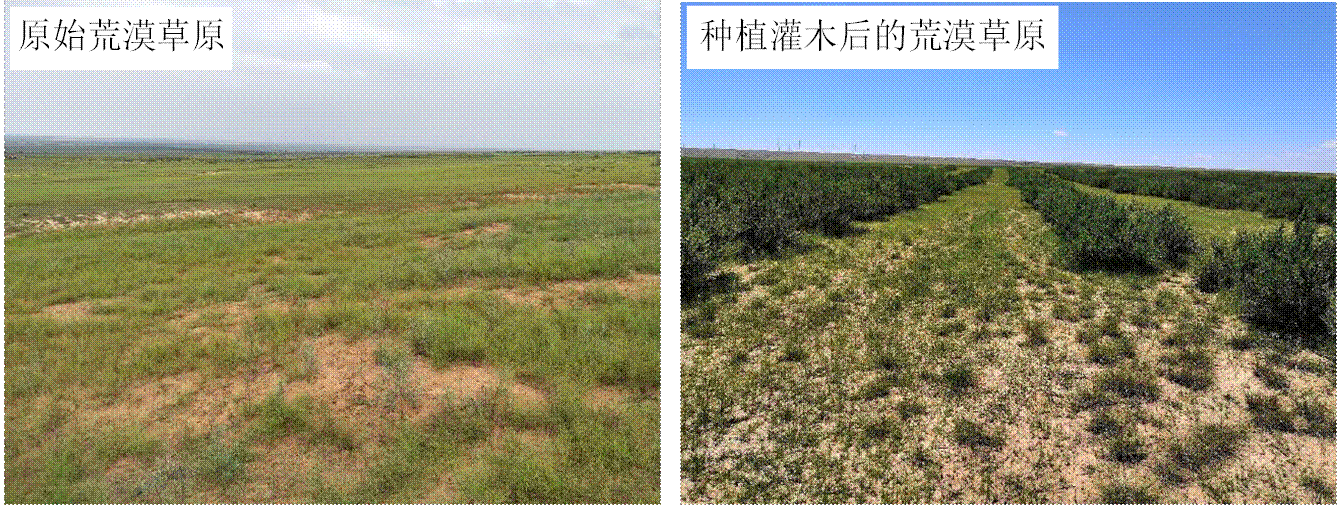 近年来,全球植被变绿(global greening)已成为科学界关注的焦点,其中,中国半干旱区的生态恢复治理,会导致人工灌丛入侵荒漠草原并引起显著的植被变绿现象(图1)。虽然人们已经认识到这种植被恢复在逆转沙漠化和防止土壤侵蚀等方面的益处,但对陆地生态系统的碳水循环过程如何影响仍知之甚少。