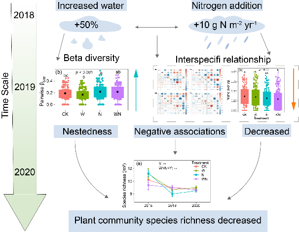 日前,荒漠生态与全球变化科研团队在水氮添加对荒漠草原物种多样性和种间关系影响方面取得了最新研究成果。
