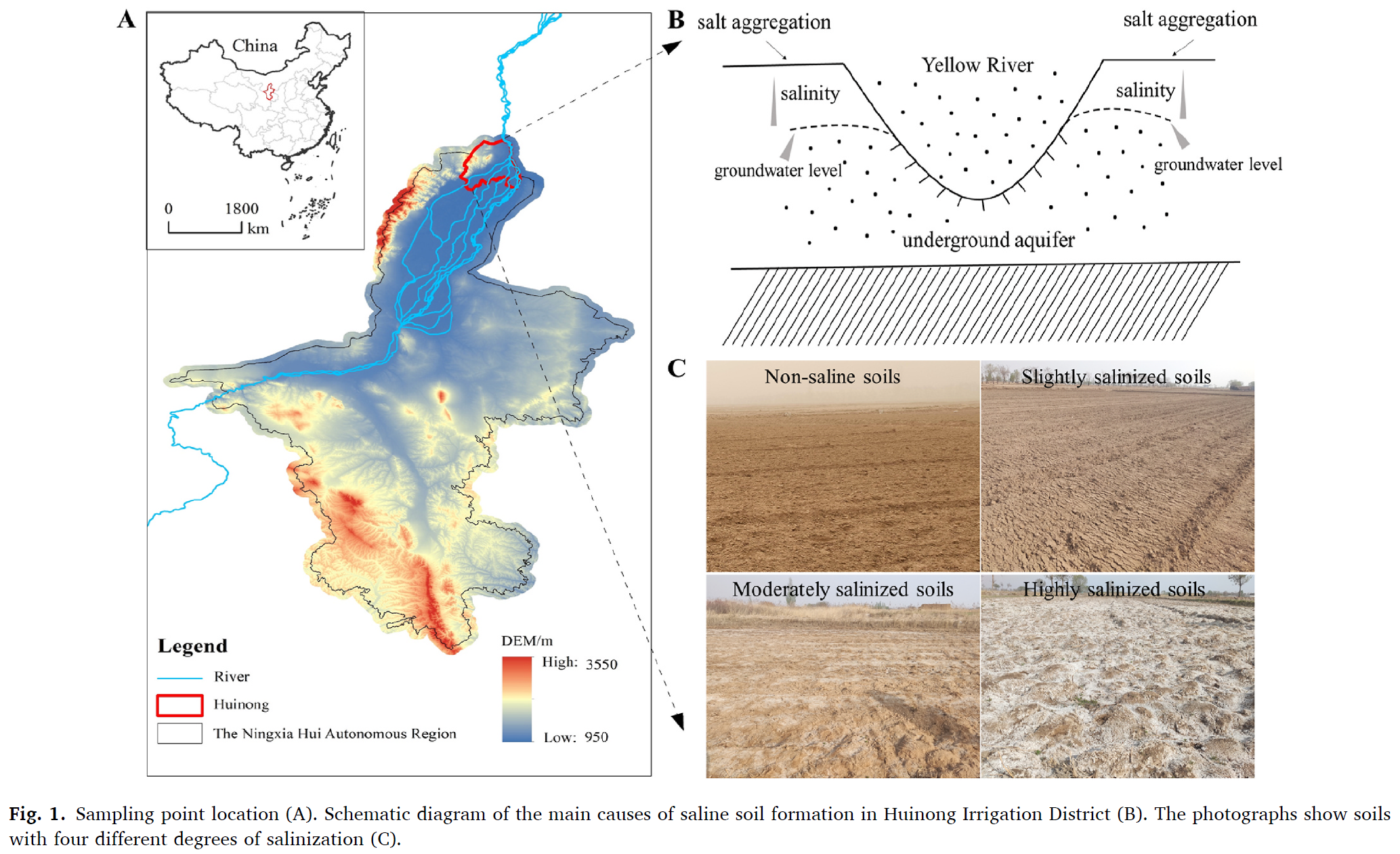 近日,我院张俊华研究员课题组在环境科学与生态学国际权威期刊《Environmental Research》(二区TOP,影响因子7.7,JCI环境类排名14/359)刊发了题为“The influence of soil salinization, induced by the backwater effect of the Yellow River, on microbial community dynamics and ecosystem functioning in arid regions”的学术论文。博士研究生何梦园为第一作者,张俊华研究员和中国科学院南京土壤所王一明研究员为通讯作者。成果获得国家重点研发计划项目和宁夏科技创新领军人才等项目的资助。