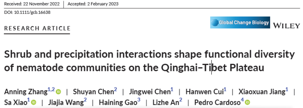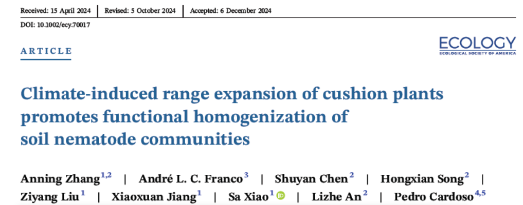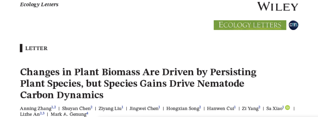 近日,我院2021届生态学毕业硕士研究生张安宁校友在生态学顶刊Ecology和Ecology Letters连续发表2篇关于土壤线虫科研成果,这是该校友在Global Change Biology顶刊发表论文后又一重要进展。该校友在兰州大学攻读博士学位期间围绕土壤动物多样性和生态系统功能关系重塑及响应全球变化,取得了系列创新性成果。