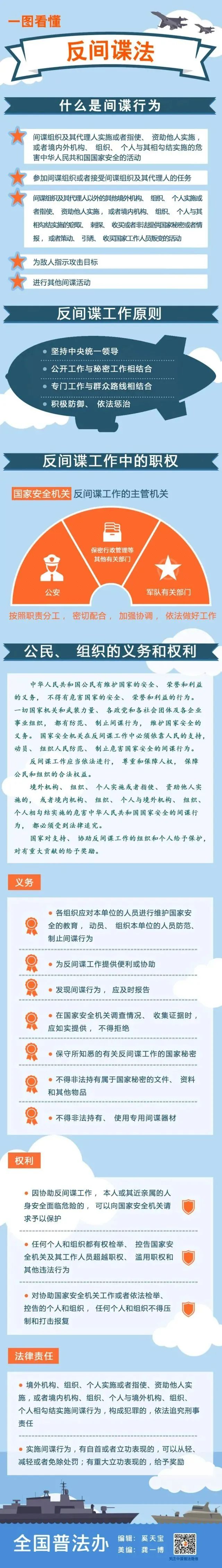 今天是《中华人民共和国反间谍法》颁布实施8周年纪念日。让我来带大家了解《反间谍法》相关知识。